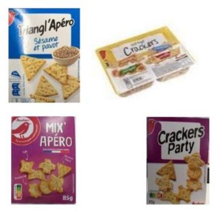 Rappel : Triangl'Apéro Sésame et pavot, Coffret crackers apéro et Mix Apéro/Crackers Party de la marque AUCHAN
