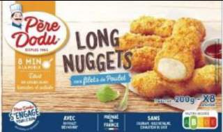 Rappel de nuggets de poulet et escalopes cordon bleu de dinde de la marque Père Dodu - présence possible de morceaux de plastique